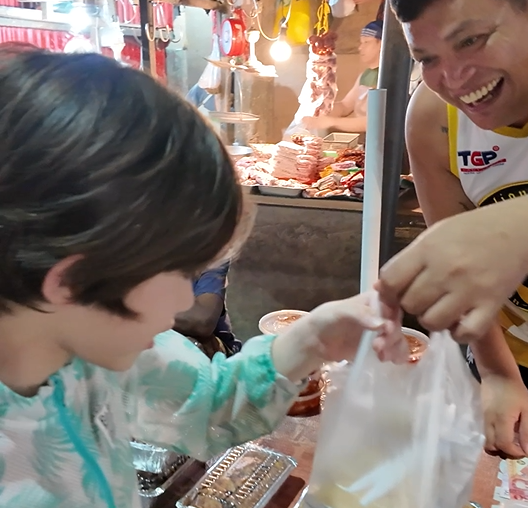 子ども達が一番気に入っていたのが、夕方~夜だけ営業するテイクアウト専門店。レストランで作られた料理を販売しているようでした。料理もデザートも1つ150~200ペソ。ラザニアやプリンなど、ちょっとお洒落な料理も多く、わざわざジプニーに乗って買いに行くほどハマりました。
